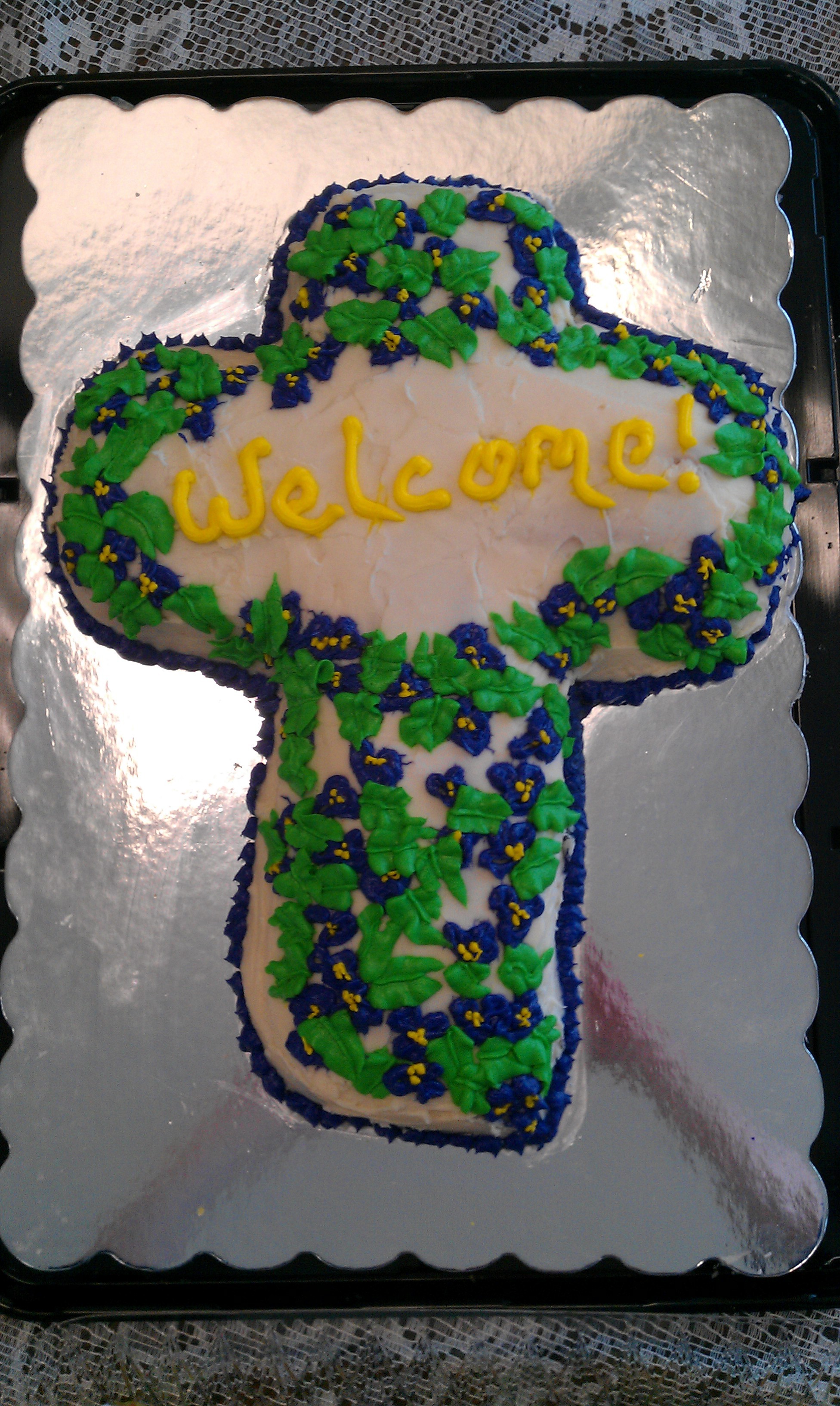 The “Welcome!” is because the cake is in honor of the new members we are welcoming into church tomorrow.